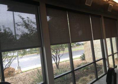 Solar Shades provide a clean look for any office or showroom, and offer incredible glare reduction while keeping the view! Solar shades not only reduce harsh sunlight by up to 99% but also block harmful UV rays that protect all of your assets — a perfect addition to any workplace environment.